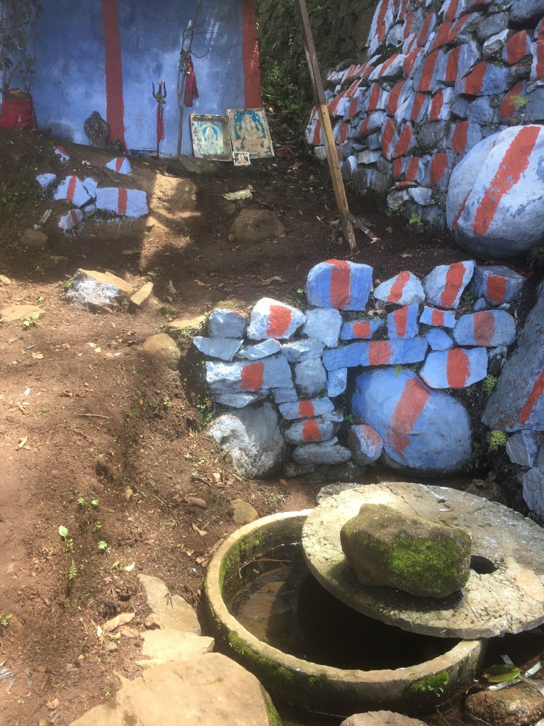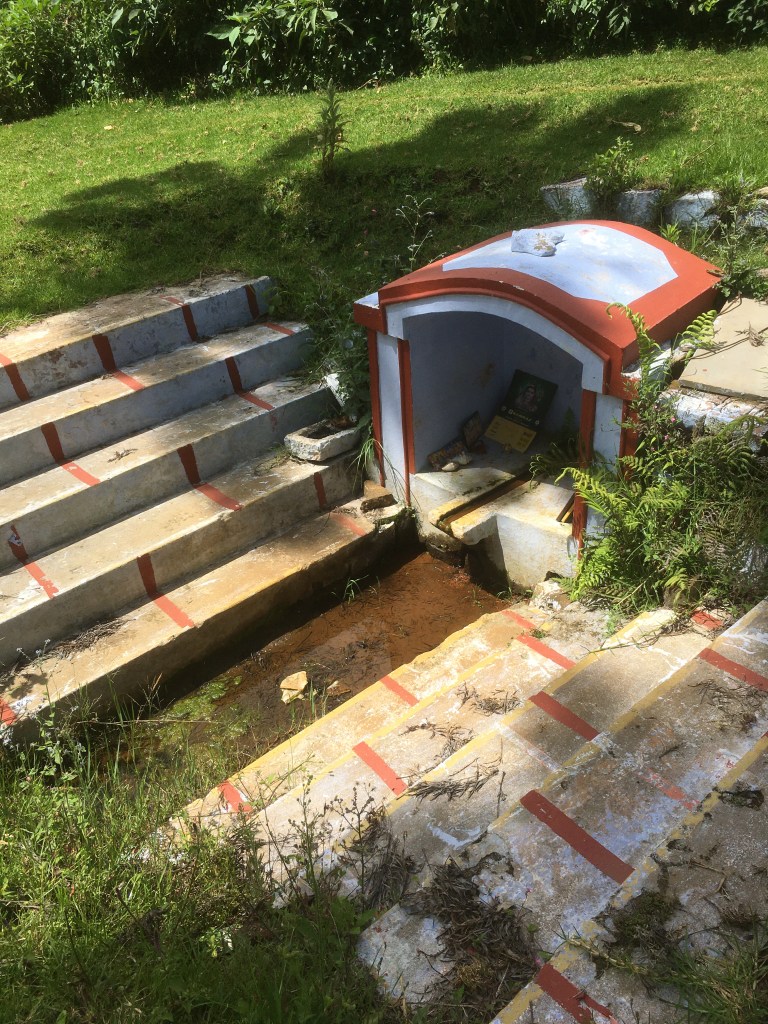 And so, we see this, shrines and temples built with spring boxes. We were asked to leave our footwear before we hiked to these springs. Lord Shiva is currently the only guardian of these springs. All the offerings were to the blue throated god who holds water in his hair.