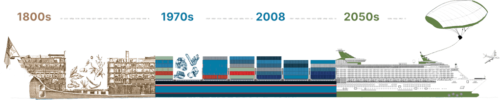 The idea behind the metaphor was to reflect on the complex relationship between cities and climate change. The narrative of the metaphor was strengthened by building a sequence that understood the ship temporally, socially and politically. A constellation of seafaring, navigation and ship building elements supported the visual logic of understanding the ship from different angles, much like urbanisation processes. An example of this was the analogous process of a ship constructed deck by deck to a city built over time through successive layers of infrastructure and utility networks . A ship’s spatial, economic, and social stratification was highlighted to represent both city and global stratification.