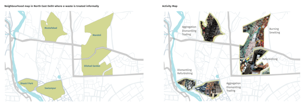 In and around metropolitan cities in India there are over 3000 units engaged in the informal sector for e-waste recycling. Large portions of these are concentrated in the North Eastern parts of Delhi in the neighbourhoods of Mustafabad, Seelampur, Dilshad Garden, Mandoli and Shastri Park, each with specific core activities. These include dismantling, smelting, refurbishing and trading that are operated informally by micro-entrepreneurs living in these areas.
