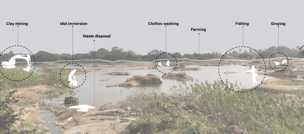 As a first step towards addressing the needs of the users and residents living around the lake, activities within the vicinity of the lake were mapped through interviews and observations. From conversations with farmers on the ground, it is understood that more than fifty years ago, Mallapalli lake held water that was used for consumption and it wasn’t a degrading environment as it is seen today. However, despite the reduced quality and quantity of the water in the lake, there are a number of activities that people depend on the lake for.