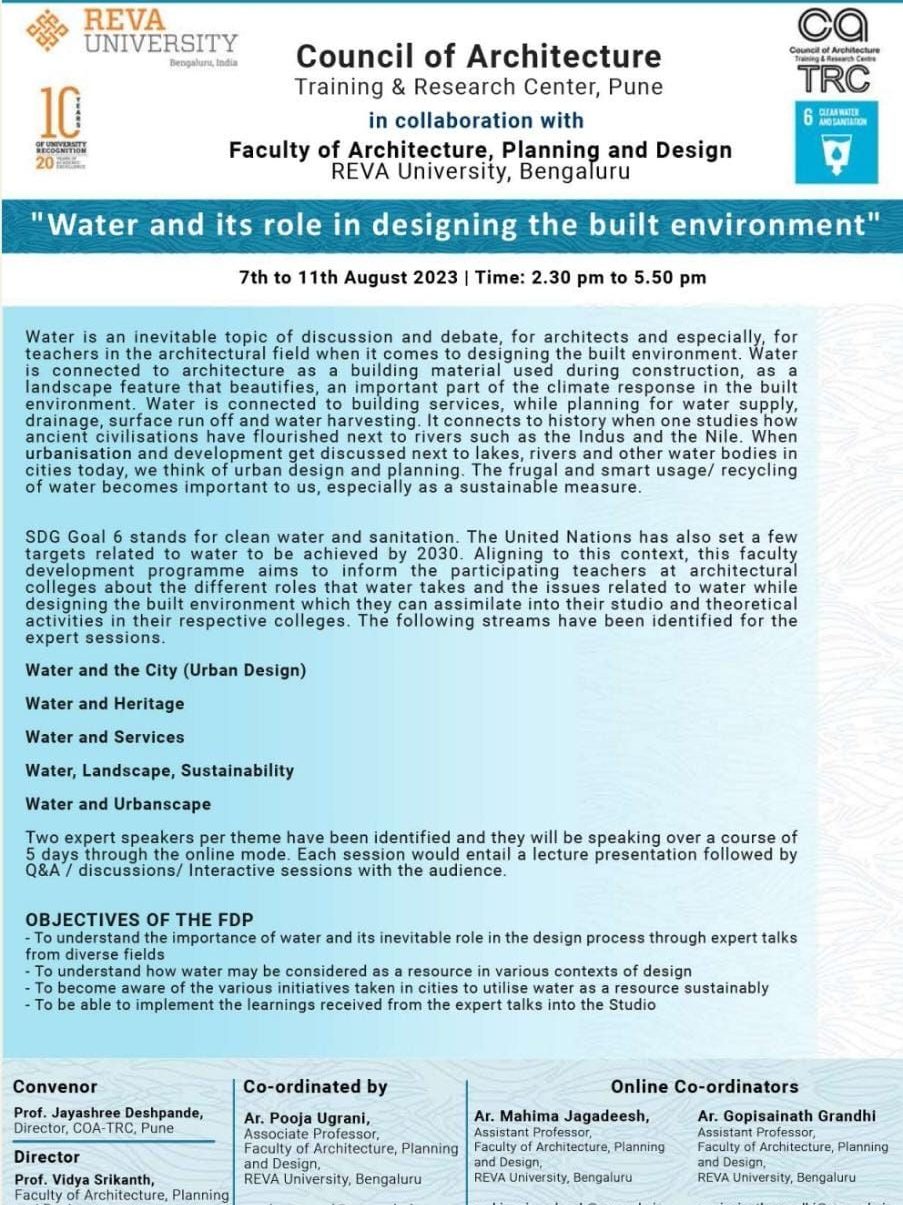 Communities, conservation and governance, REVA University Faculty Development series on water and its role in designing the built environment, Bangalore, India / Aug 2023
